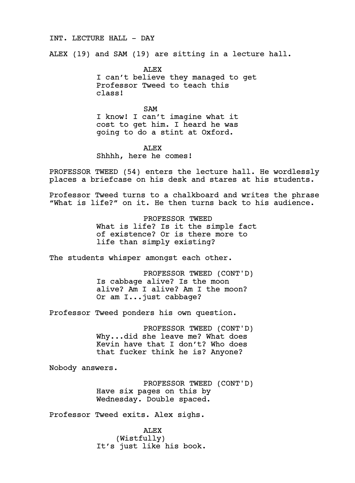 A prestigious English professor ponders the existential questions of life, whose answers eluded even the greatest minds of this century.